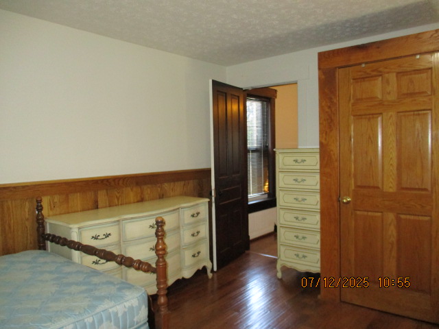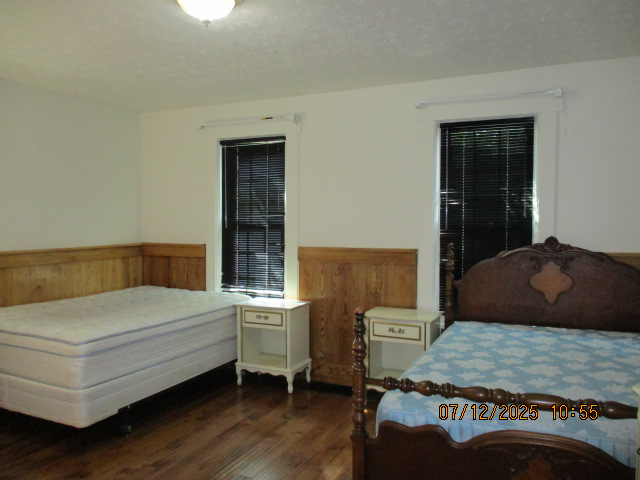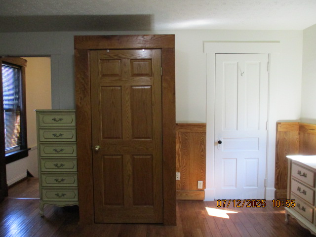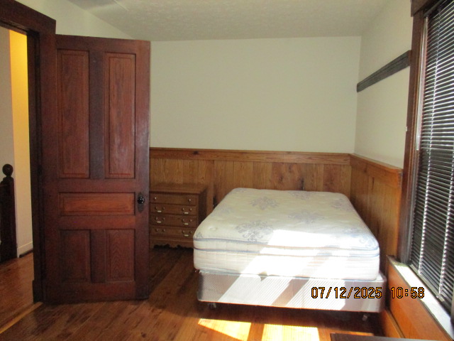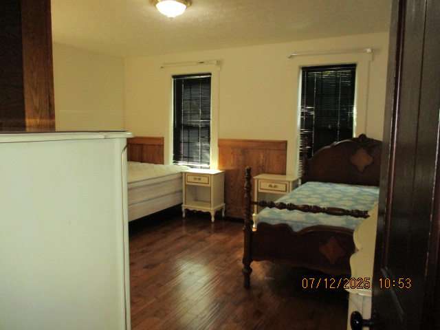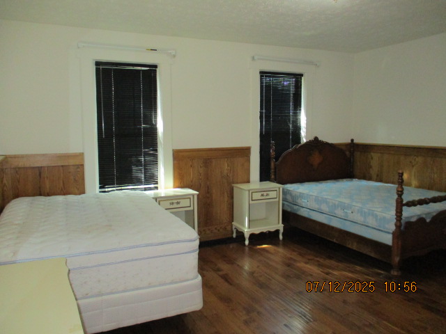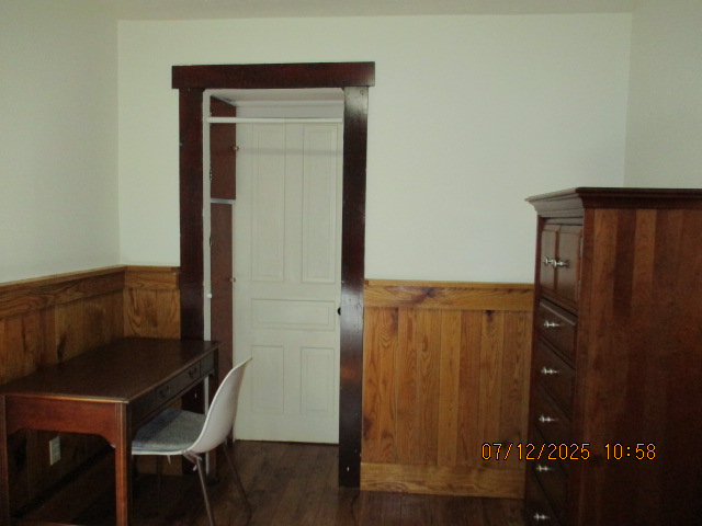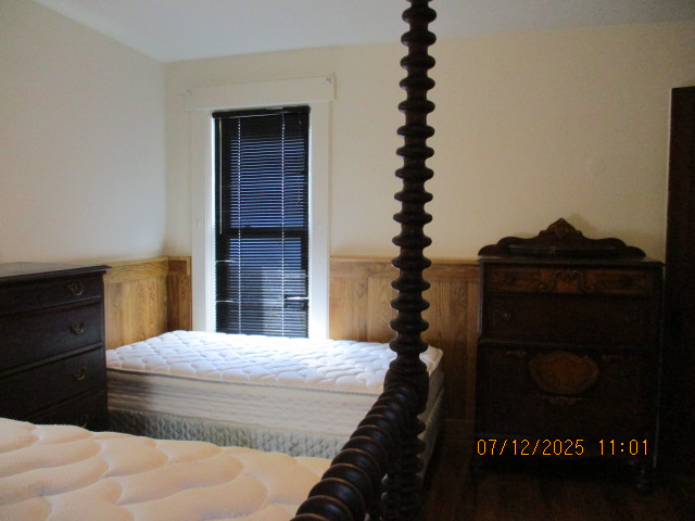 currently with full bed, and twin bed, oak wainscoting, Desk, Dressers, Closet