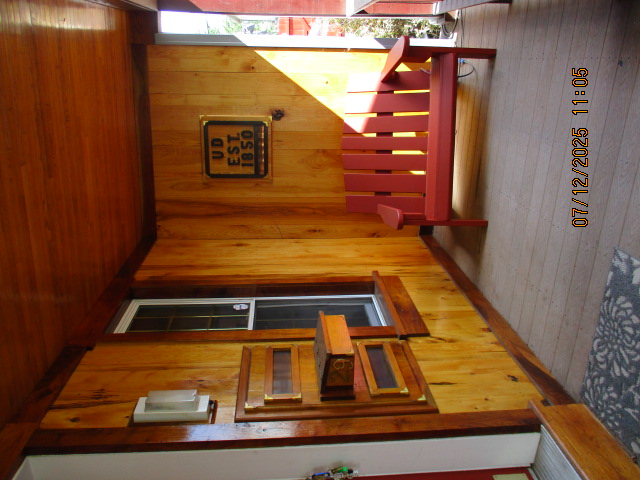 porch with oak ceilingand oak walls with black walnut trim, custom