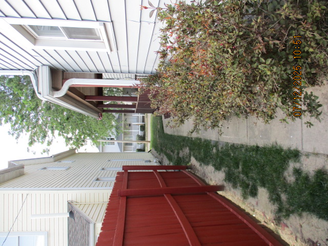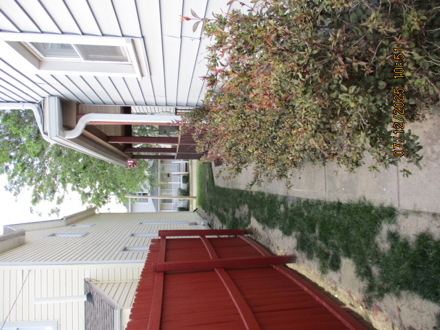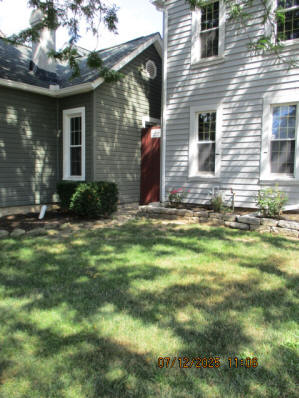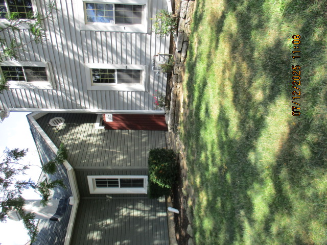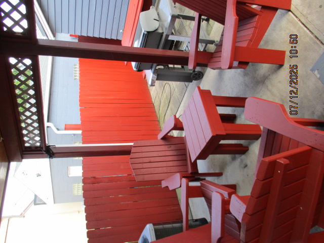 adirondack chair, stone flowerbed, side by side with our home at 25