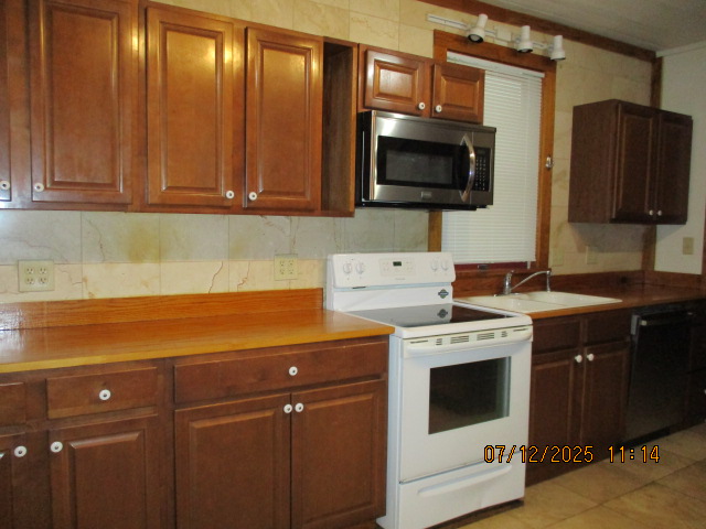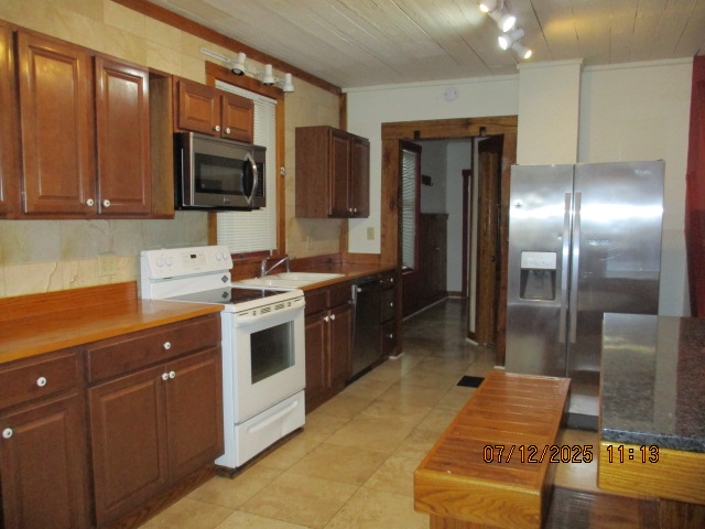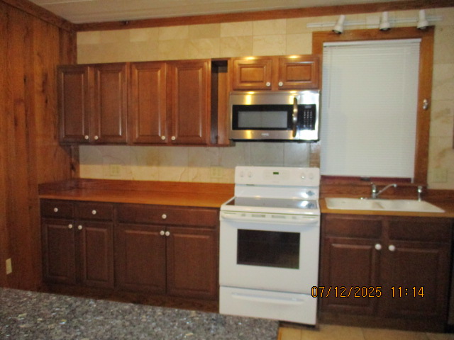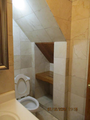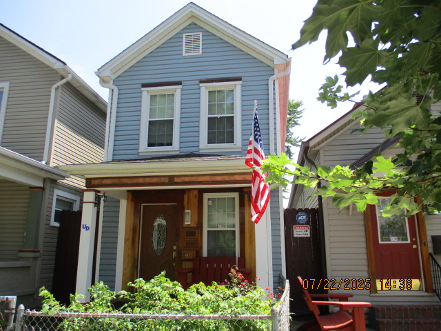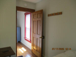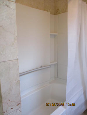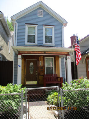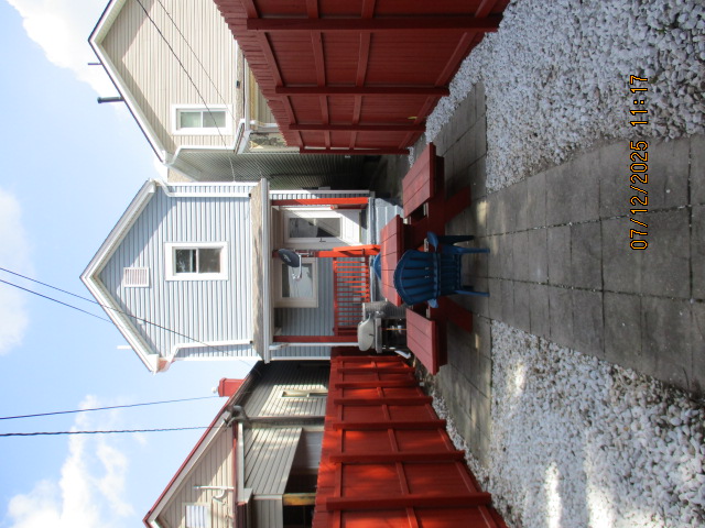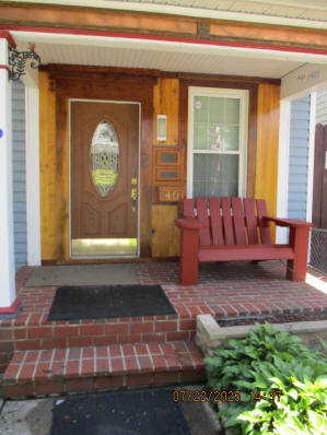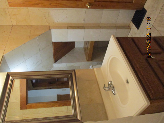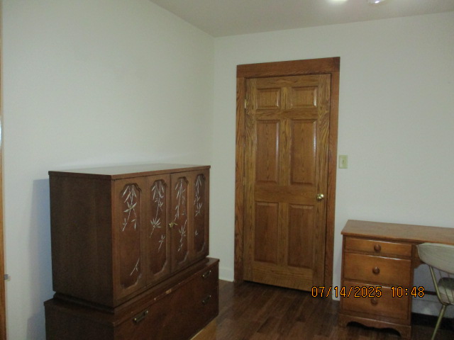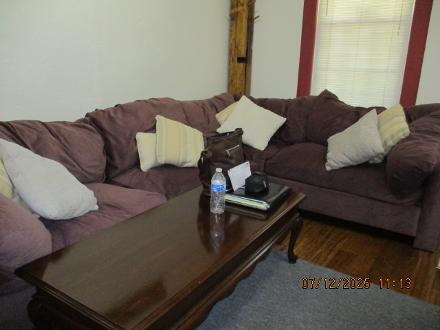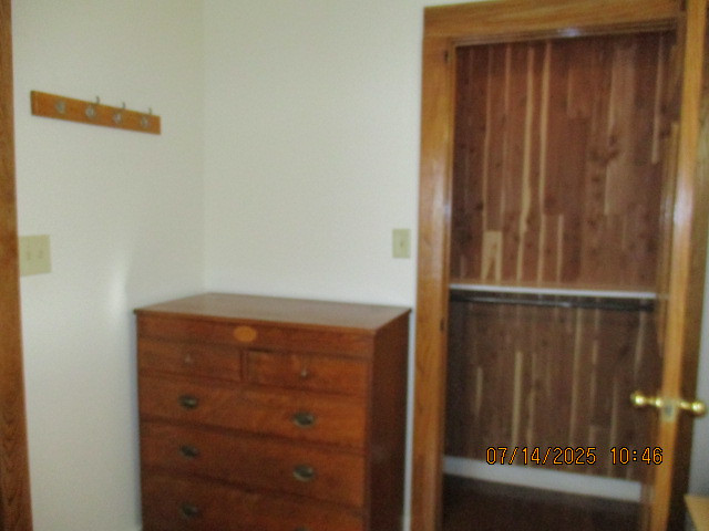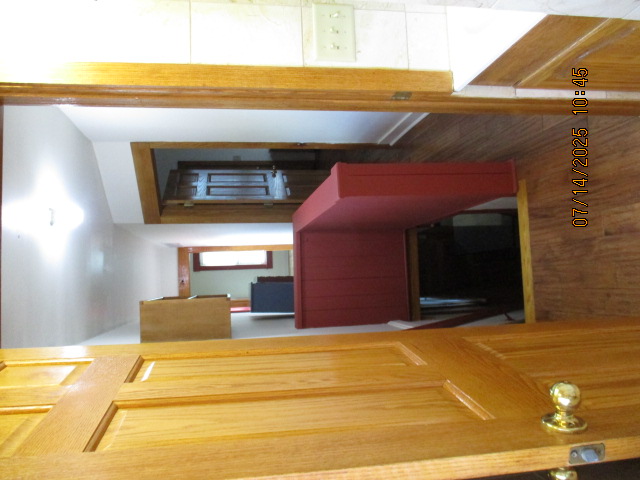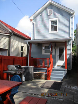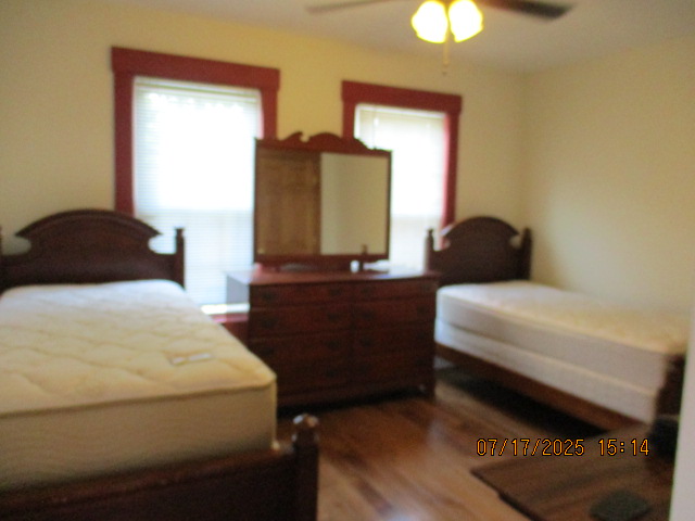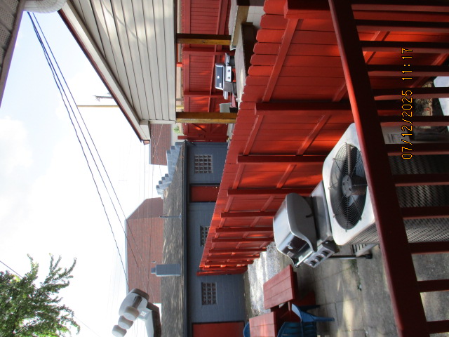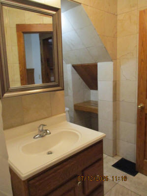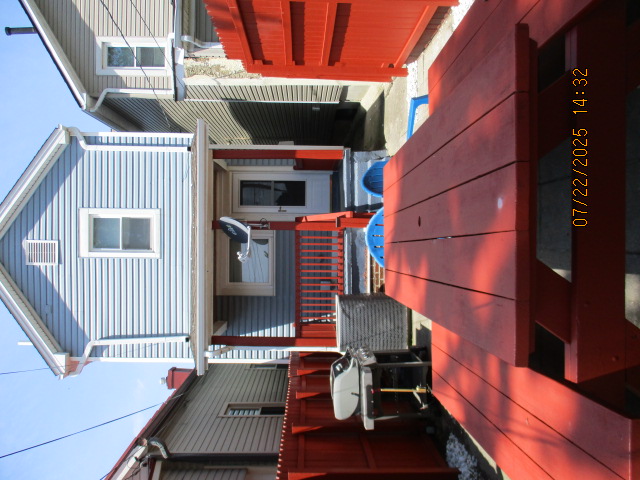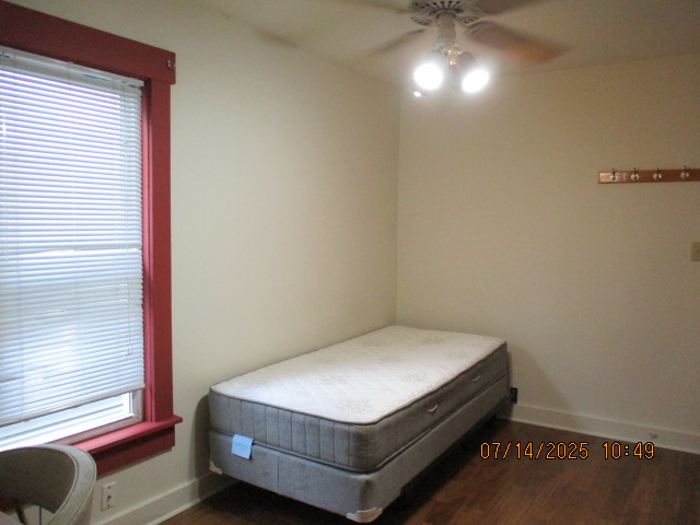 Kitchen with butcher block countertops with farmhouse sink, tile flooring, custom built oak table with blue coral granite top, custom built wood staircase, cherry cabinets. Downstairs bathroom with Italian marble walls, oak vanity and tile flooring, commercial bathtub/shower Washer and dryer area with Speed Queen washer and dryer set, hallway, storage basement off of laundry area Privacy fenced in backyard with back patio area with picnic table, gas grill and gas firepit Upstairs bathroom with Italian marble tile walls, tile flooring, and bathtub/shower, and upstairs hallway and landing. Back upstairs bedroom currently with full bed, desk, dresser, ceiling fan, and cedar lined closet Middle upstairs bedroom currently with twin bed, desk, dressers, ceiling fan and cedar lined closet Front upstairs bedroom currently with two twin beds, desk, dresser, ceiling fan and cedar lined closet This page last updated 07/29/2025