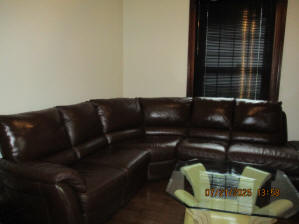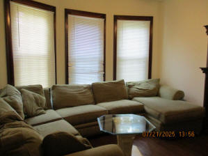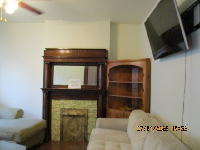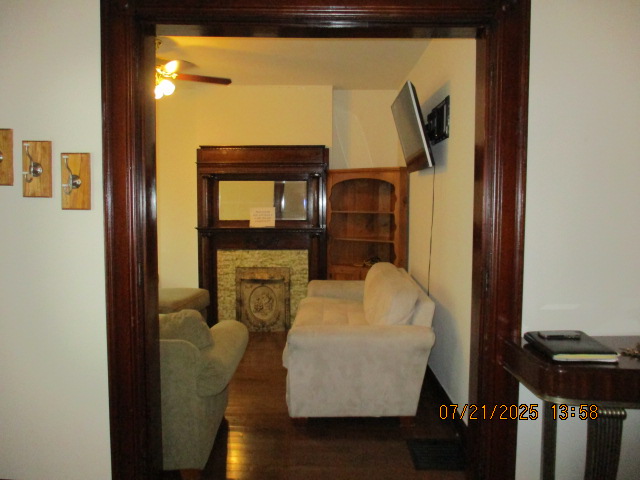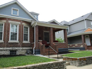 46 Frank Street This gorgeous brick home features: solid oak wood flooring downstairs in living areas and bedrooms, two downstairs bedrooms both with cedar lined closets, one upstairs bedroom with oak wainscoting, cedar lined closet and two other closets! Kitchen with hickory cabinets, oak wainscoting, slate tile flooring, dishwasher, microwave and platinum series commercial grade washer and dryer. Bathroom features Italian marble tile and vanity with two sinks. Central heat and air conditioning, steel entry doors. Front entrance door is trimmed in black walnut. This house also has a living room and a parlor with a beautiful fireplace with a tiger oak mantle, leather living room furniture, and wall mounted television. Privacy fence in backyard, picnic bench, gas grill and hammock. Best of all, you are a block and a half from campus and all the fine restaurants!! **As with all our properties, maintenance is included.** (Click on any of the pictures below to see an enlarged view)** Front views of house with front porch with oak ceiling and stone retaining wall Parlor with solid oak wood flooring, fireplace with tiger oak mantle, ceiling fan, sectional sofa, wall mounted television