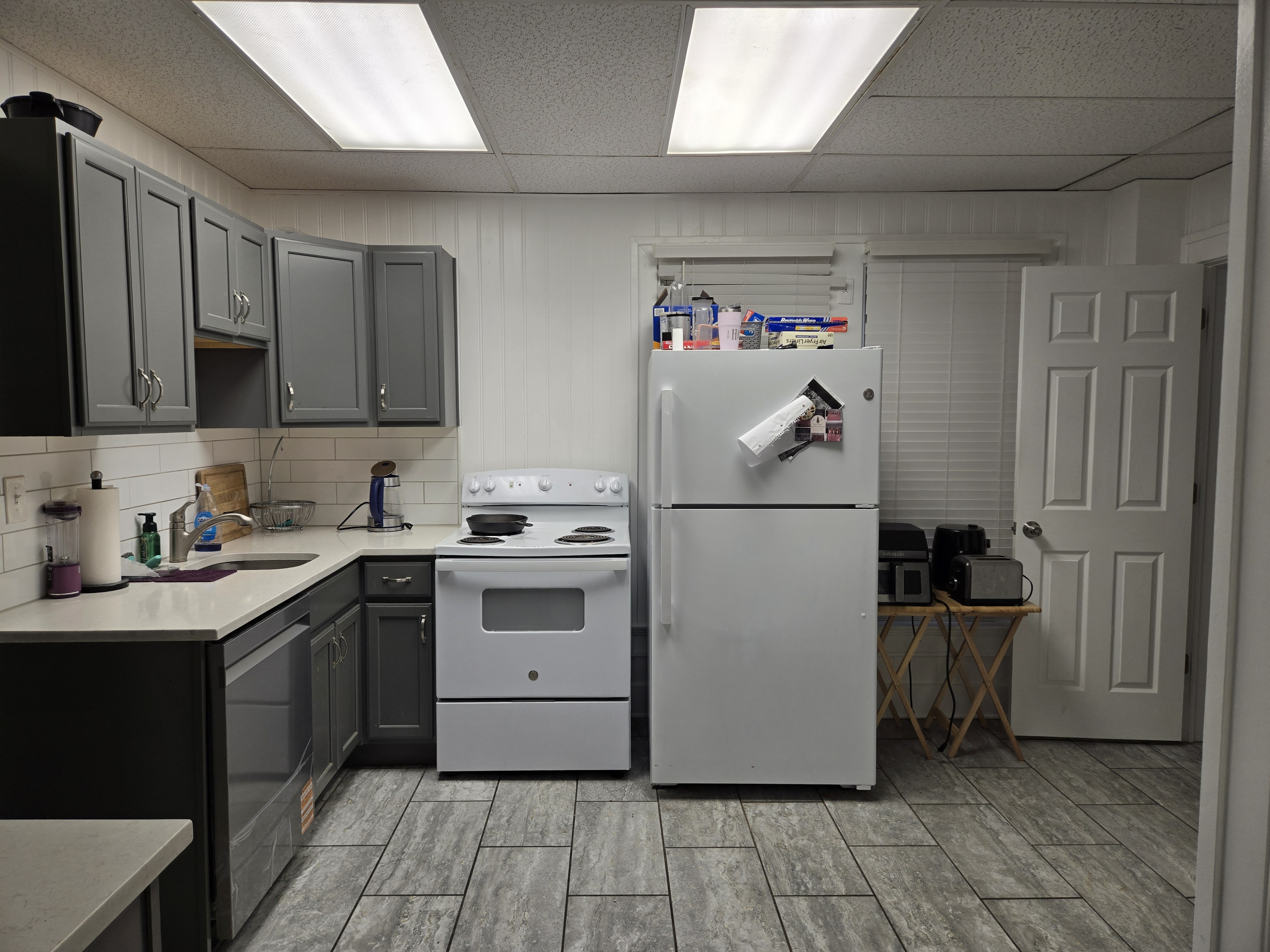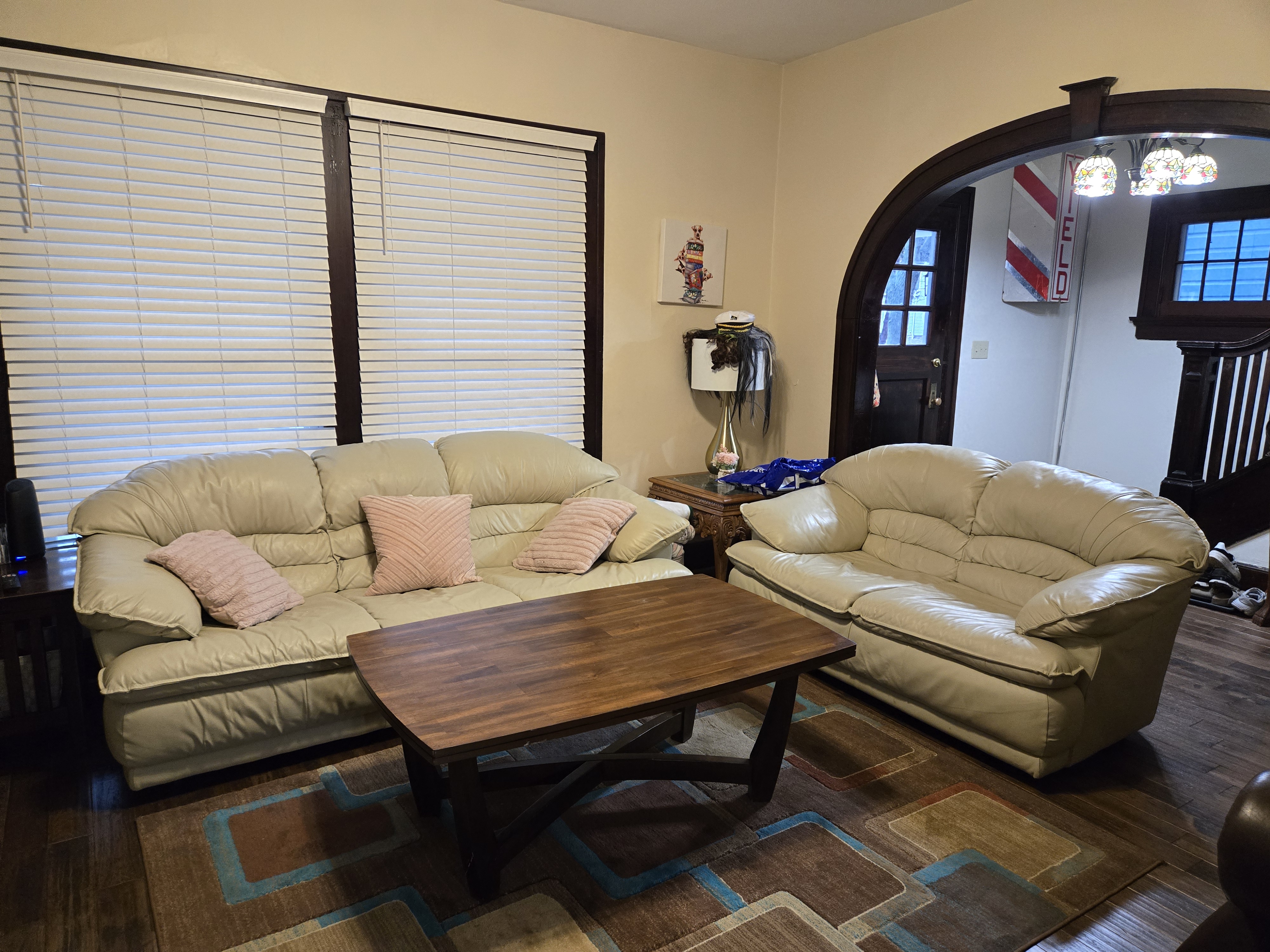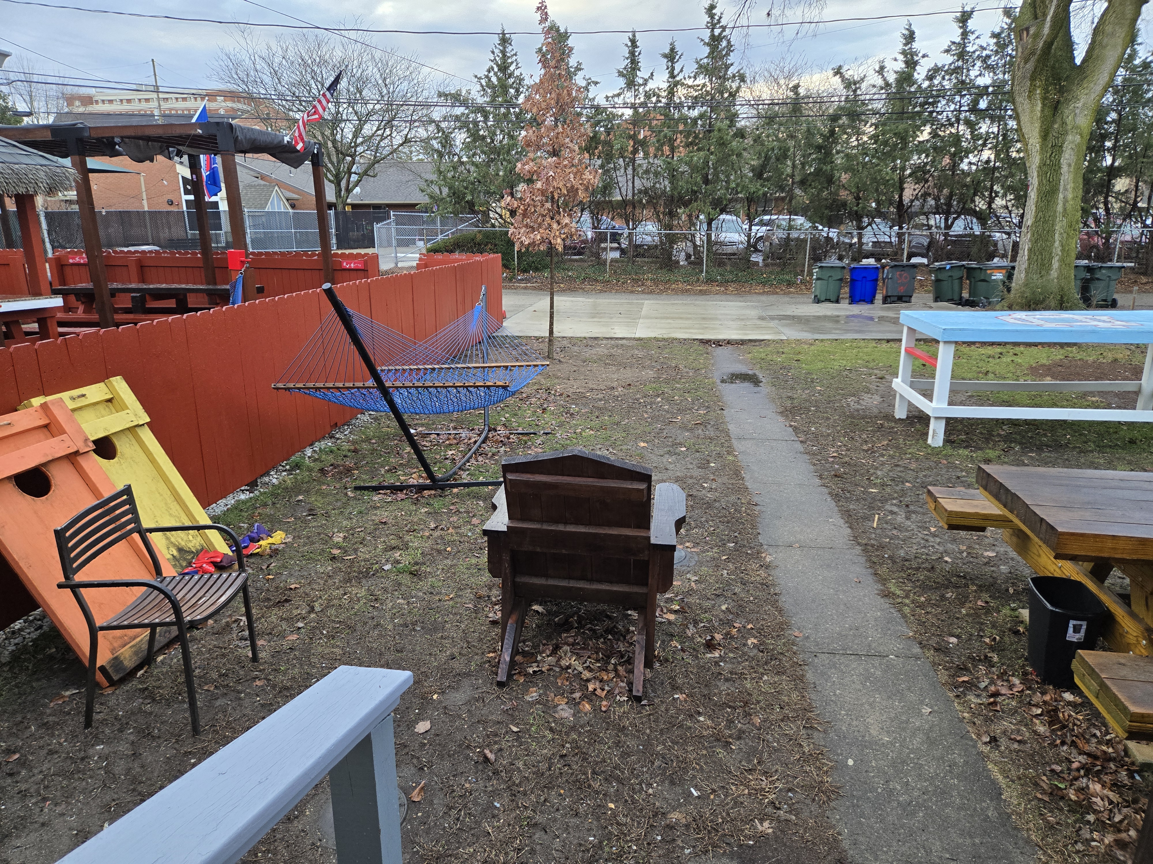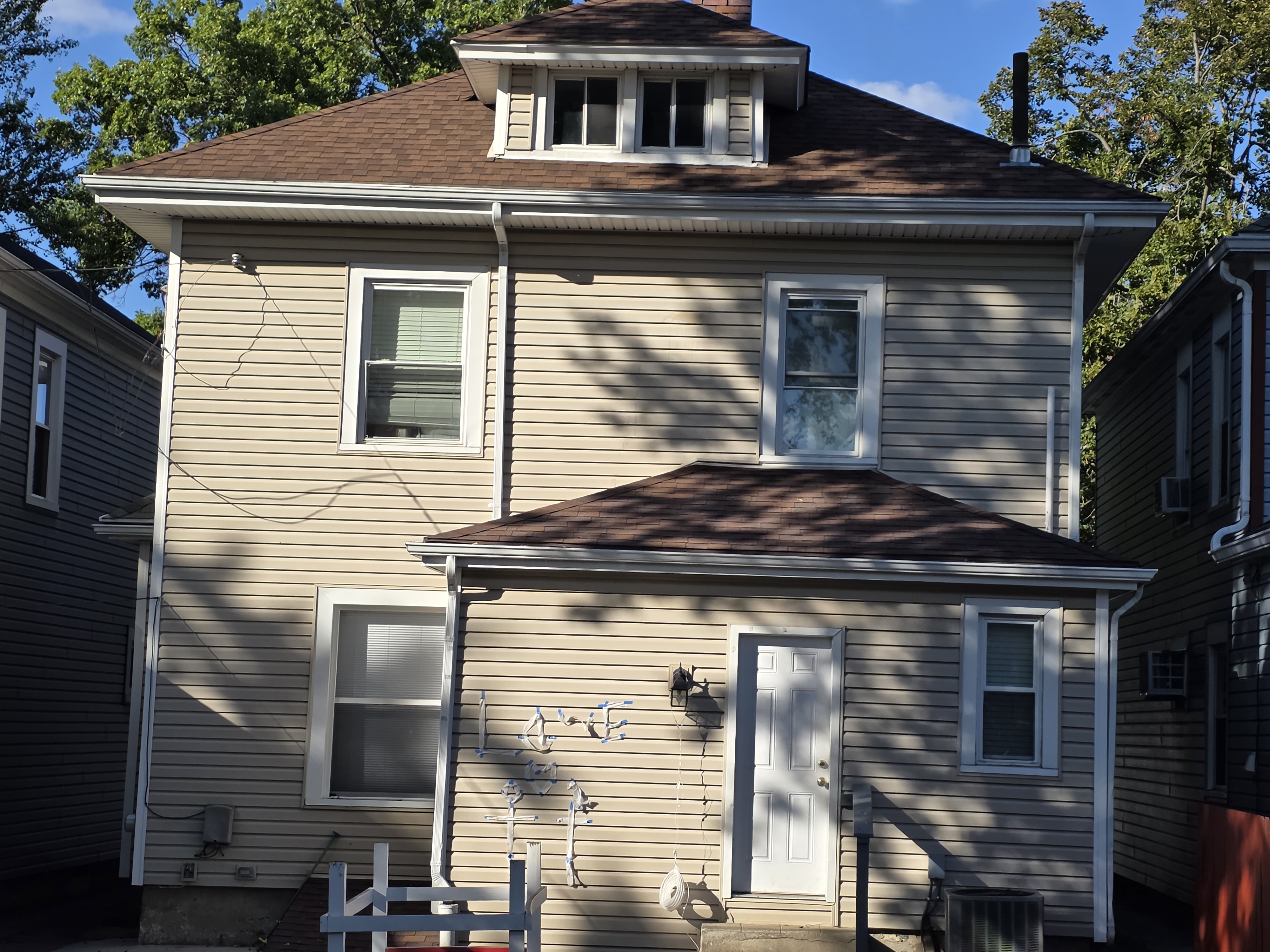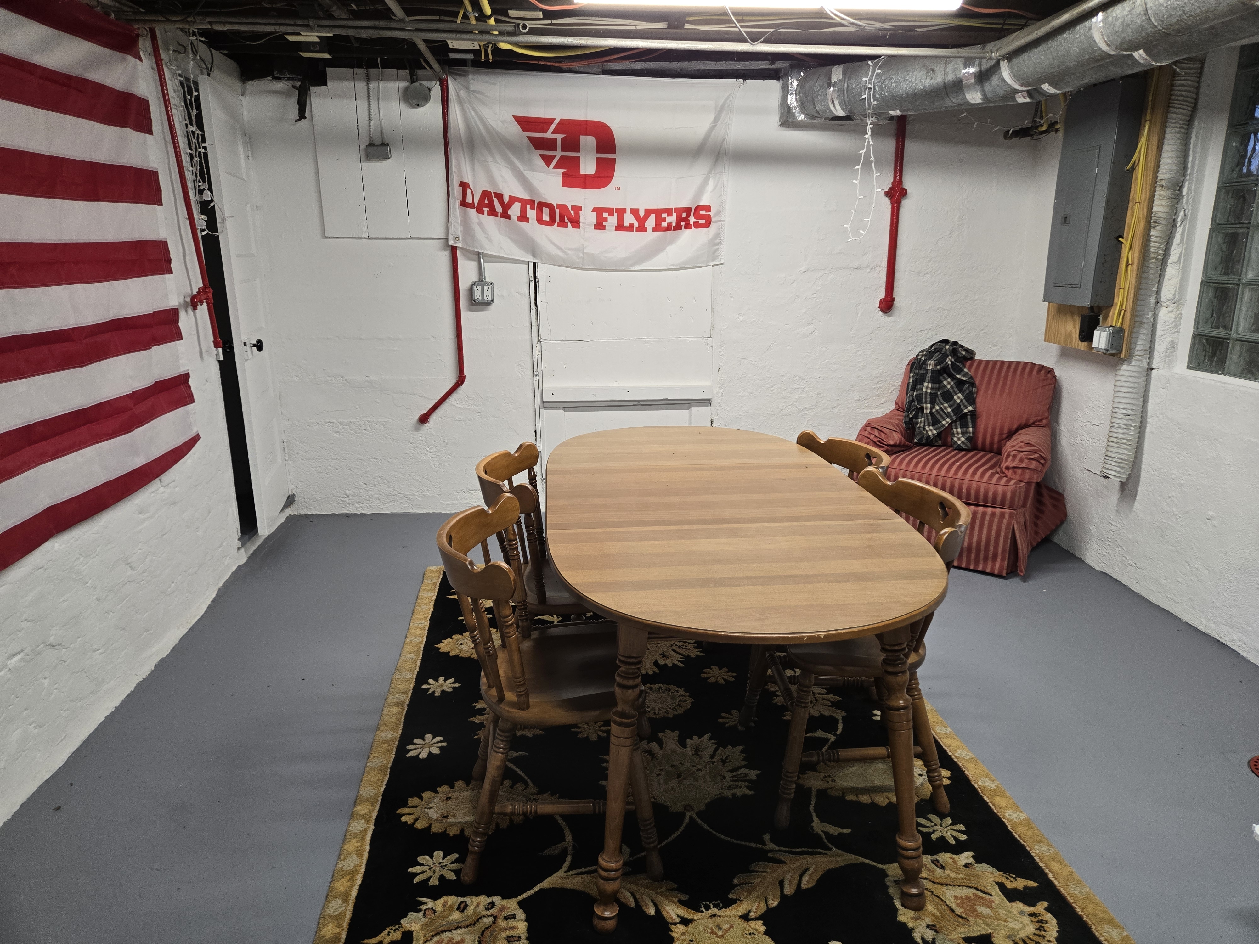 46 Woodland Avenue - right next door to our Tiki house at 48 and 50 Woodland Avenue This property has the following features: 3 large bedrooms, licensed to six students, one and half bathrooms, upstairs laundry, large living room and dining room, beautiful original wood front entry door and wood staircase, central heat and air conditioning, will be fully furnished, will have a nice new concrete pad in backyard, picnic table, new grill, hammock, beatiful stones in backyard this summer. Best of all, you are half a block from campus and all the fine restaurants!! As with all our properties, maintenance is included. (Click on any of the below pictures to see an enlarged view) New updated pictures at the beginning of each room section. Recent updates over winter break: new toilets, new dishwasher, new hardwood hickory flooring installed down stairs, new stair treads for upstairs staircases and basement staircase, new picnic table, hammock, adirondack chair added in backyard, new lighting in kitchen, living and dining rooms; large multi room basement cleaned out, painted and dry locked, new glass block windows and furniture, a great space to hang out in! More front and current back yard views (back yard to have poured concrete pad in backyard, new grill, hammock, picnic table, large stones added this summer Good size living room with faux fireplace, beautiful wood staircase and original wood front entry door Good size kitchen with dishwasher, microwave, built in storage cabinet, new lighting, new dishwasher Storage room off of kitchen by back entrance, cleaned out and painted Downstairs half bathroom off of kitchen, repainted and new toilet LLLarge dining room, new hardwood hickory flooring new lighting Large living room with faux fireplace, beautiful original wood front entry door, beautiful wood staircase, new hardwood hickory flooring, new stair treads, new cabinet, custom UD sign, new lighting Newly cleaned out basement with plenty of space to gather, with new glass block windows, tabe and chairs, stair treads Current backyard, with hammock, picnic table, and adirondack chair, parking pad, (to be updated spring 2026 with poured concrete backyard space) Large upstairs bathroom with big shower, shelving unit, new toilet, new glass showe doors Upstairs laundry Triple bedroom with three closet spaces Double bedroom with two closet spaces Single bedroom, good size closet space Unfinished attic bonus space This page last updated 1/23/2026