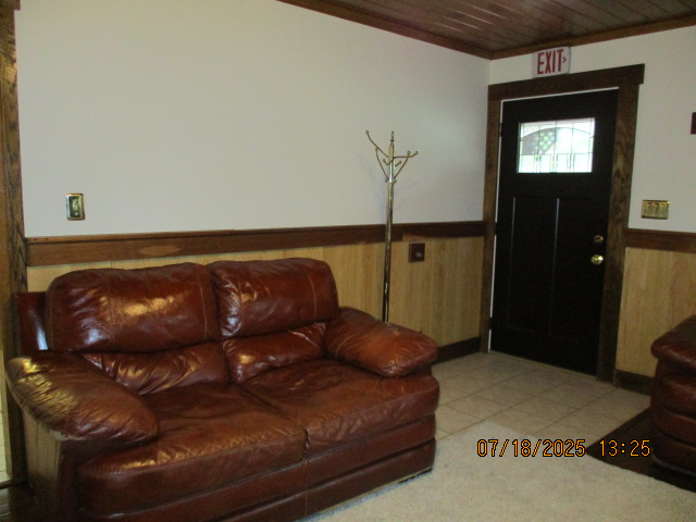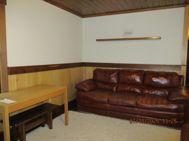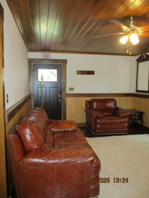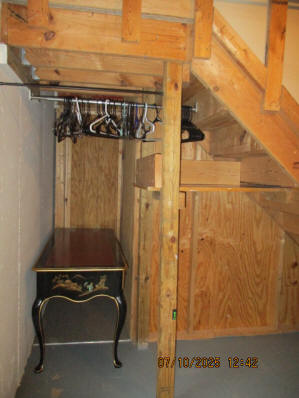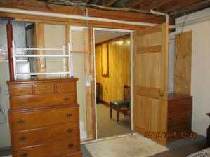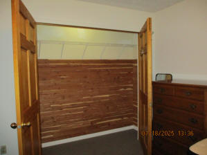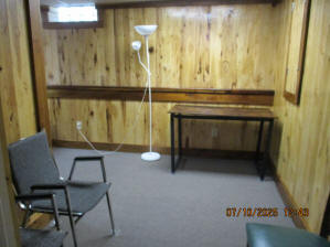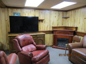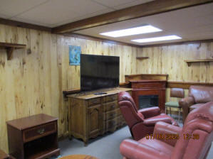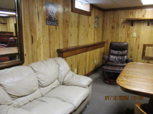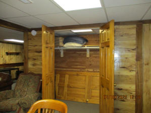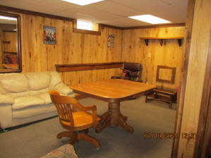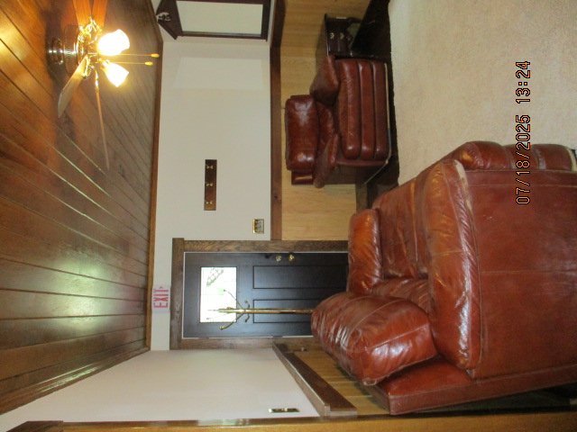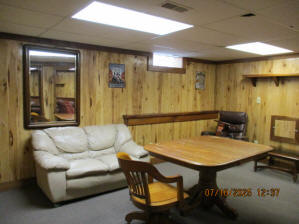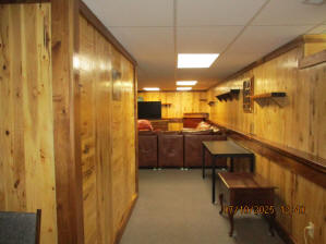 Absolutely beautiful Basement Recreation Room with solid hickory walls with black walnut accents, with gas Fireplace , beautiful large leather sectional sofa, leather furniture, table and chairs, bedroom area with full wood bed, security camera monitoring system, dresser, desks currently in main basement area, large cedar lined closet in main basement area. This page was last updated 07/29/25 |