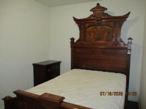 Privacy Fenced in Backyard with Basketball Court Outside Fence with Parking Pad, side yard, Picnic Table in Backyard, propane fire pit, hammock in stand, gas grill, security lighting Living Room with solid oak wood flooring, Premium Leather Living Room Set, oak wainscoting with black walnut trim, hallway leading to bedrooms, hallway closet First main floor Bedroom currently with beautiful Victorian style Full Bed, Desk, Nightstand, and cedar lined Closet