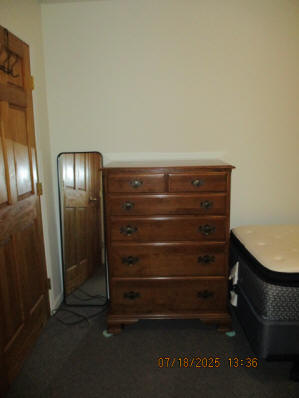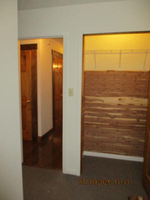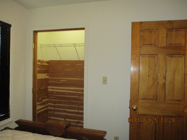 Second (middle) main floor Bedroom currently with wood full bed, Desk, Dresser, cedar lined Closet, mirror, and Nightstand Bathroom with marble tile walls with Bathtub/Shower and Linen closet outside bathroom Third Upstairs Bedroom with Large cedar lined Closet, currently with two wood twin beds, cherry high boy dresser