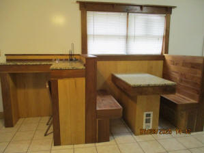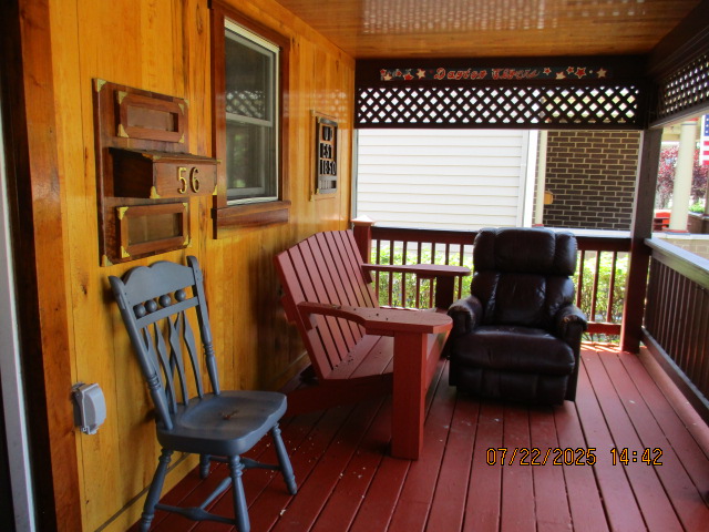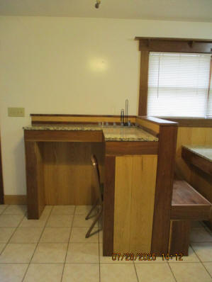 56 Jasper Street This property has the following features: 3 bedrooms on main level, beautiful finished basement recreation room with solid hickory walls and black walnut trim, fireplace in basement, bedroom area in basement with a large cedar lined closet, living room with a premium leather living room set, oak ceiling, with oak wainscoting with black walnut trim, and solid oak wood flooring, television, bathroom with marble tile walls, custom built oak kitchen booth and bar height shelf both with granite tops, central air conditioning, washer and dryer, basketball court, off street parking, privacy fenced in backyard with picnic table and gas grill. Best of all, you are half a block from campus and all the fine restaurants!! **As with all our properties, maintenance is included.** (Click on any of the pictures below to see an enlarged view) Front porch views with copper accents, oak front porch ceiling, oak back wall, custom mailbox and UD sign Large Kitchen with Tile Flooring, custom built oak kitchen booth and bar both with granite tops, Microwave, Ceiling Fan, Washer and Dryer area
